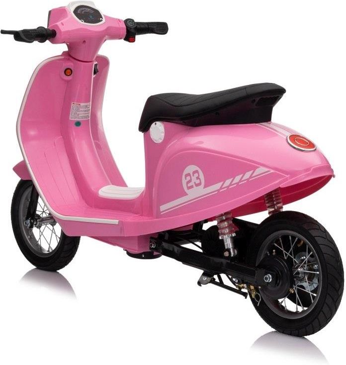 Skuter Retro 23 Różowy – Styl, komfort i nowoczesna technologia Klasyczny design w nowoczesnym wydaniu Skuter Retro 23 to wyjątkowy pojazd, który łączy w sobie elegancki styl vintage z nowoczesnymi technologiami. Klasyczna sylwetka z dopracowanymi detalami przyciąga wzrok, a wysokiej jakości materiały i solidna konstrukcja zapewniają trwałość i komfort użytkowania. Mocny silnik i wydajny akumulator Wyposażony w silnik o mocy 350W oraz akumulator 24V (2x12V/10Ah), skuter gwarantuje płynną i dynamiczną jazdę. Dzięki funkcji wolnego startu oraz dwóm trybom prędkości użytkownik ma pełną kontrolę nad pojazdem, co zapewnia bezpieczne i przyjemne doświadczenie z jazdy. Komfort i stabilność Duże, pompowane koła w rozmiarze 12,5/2,25, wzmocnione szprychami, gwarantują doskonałą przyczepność i stabilność na różnych nawierzchniach. Regulowane tylne zawieszenie oraz dwa amortyzatory zapewniają płynną jazdę, minimalizując wstrząsy i nierówności terenu. Nowoczesne oświetlenie i system audio Skuter Retro 23 został wyposażony w oświetlenie LED, które obejmuje zarówno światła przednie, jak i tylne, zwiększając widoczność i bezpieczeństwo. Intuicyjny panel audio oferuje możliwość odtwarzania muzyki przez MP3, Bluetooth oraz radio FM, a także wgrane melodyjki i klakson dla pełnej radości z jazdy. Stylowe i wygodne siedzenie Czarne, eleganckie siedzenie wykonane z ekoskóry o wymiarach 44x24 cm zapewnia komfort nawet podczas dłuższej jazdy. Ergonomiczna konstrukcja sprawia, że podróżowanie skuterem jest wygodne i przyjemne. Specyfikacja: Silnik: 350W Akumulator: 2x 12V/10Ah Biegi: Przód Amortyzatory: Tył Siedzenie: Ekoskóra, 44x24 cm Koła: Pompowane AIR Panel Audio: MP3, Bluetooth Efekty dźwiękowe: Klakson, wgrane melodyjki, dźwięk uruchamiania silnika Światła: Przód, tył Bezpieczeństwo: Przycisk STOP, pasy bezpieczeństwa Dodatki: Wskaźnik naładowania, brelok Wymiary: 134x55x80 cm, prześwit 15 cm Maks. obciążenie: 65 kg Waga: 24,5 kg Tablice rejestracyjne do pojazdów dla dzieci z imieniem dziecka + prawo jazdy + smycz i identyfikator na prawo jazdy Tablice dla większej trwałości drukowane są na papierze fotograficznym, a z tyłu podklejane mocną taśmą dwustronną. Są uniwersalnej wielkości pasującej do większości pojazdów dla dzieci - ok 13,7 cm x 3,2 cm. Zestaw oczywiście zawiera dwie sztuki. Prawo jazdy jest wielkości oryginalnego ok 85,6 mm x 54 mm z miejscem na wklejenie zdjęcia i podanie danych dziecka wraz z posiadanymi uprawnieniami. Aby nie była to chwilowa zabawka, która zaraz się zniszczy lub zginie w zestawie dodajemy identyfikator do którego montujemy prawo jazdy, a następnie identyfikator przypinamy do smyczki, którą również jest w zestawie. Taki komplet dziecko może nosić na szyi. Smycz jest wysokiej jakości z dwustronnym nadrukiem - nie jak w przypadku tańszych gdzie druga strona jest w całości biała co wygląda nieestetycznie i ulega szybkiemu zabrudzeniu. Wytyczne użytkowania pojazdu dla dzieci na akumulator Czas ładowania motorka wynosi 8 do 10 godzin. Prawidłowo użytkowany akumulator nie powinien być przetrzymywany po rozładowaniu, dłużej niż dobę, ponieważ może znacznie się skrócić jego żywotność. Przed pierwszym uruchomieniem, należy zapoznać się z instrukcją.