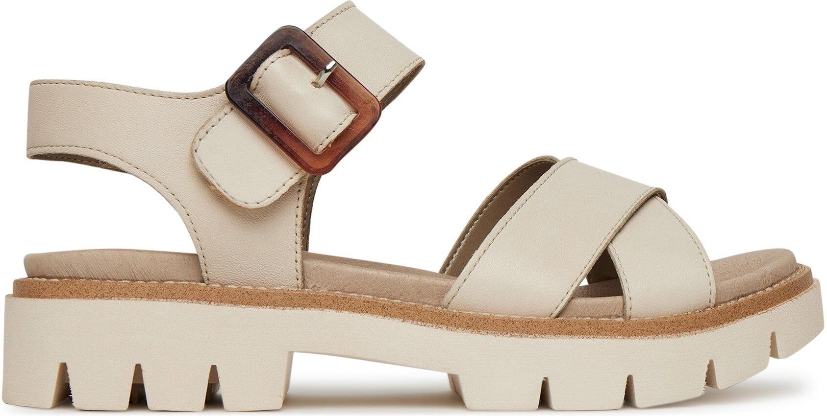 Sandały marki Remonte w kremowym kolorze to idealny wybór dla kobiet ceniących elegancję i komfort. Wykonane ze skóry, gwarantują trwałość i luksusowy wygląd. Zapięcie na rzep umożliwia szybkie i wygodne zakładanie, jednocześnie zapewniając doskonałe dopasowanie do stopy. Wyjątkowa technologia Remonte Soft, zastosowana w wkładce, oferuje miękką amortyzację, co sprawia, że każdy krok jest niezwykle komfortowy. Te sandały to doskonałe uzupełnienie letnich stylizacji, łącząc w sobie funkcjonalność i modowy akcent. Idealne na każdą okazję – od codziennych spacerów po eleganckie wyjścia!