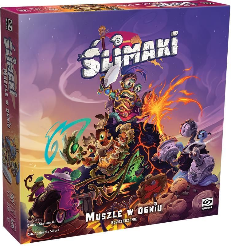 PRZEDSPRZEDAŻ! UWAGA! To nie jest samodzielna gra, do rozgrywki potrzebny jest zestaw podstawowy gry Ślimaki. Brzuchonogi, przygotujcie się, nadchodzi czas naprawdę ognistej rozwałki! Z toksycznych wód wokół Gastropodii wynurzają się nowe, wulkaniczne wyspy, a do zaciętej walki dołączają potężni dowódcy. Sięgają po nieznaną dotąd broń o niszczącej sile rażenia, by pokazać rywalom, że to ich frakcja zatriumfuje. U ich boku stają wyszkoleni żołnierze, a morska bryza niesie wystrzelone pociski i granaty dalej niż kiedykolwiek wcześniej. Zatem zarzucaj muszlę na plecy (nogę?), ładuj broń i pełzaj do boju! Muszle w ogniu to rozszerzenie do Ślimaków – dynamicznej gry o walkach oddziałów nabuzowanych mięczaków. Pozwala ono rozbudować grę podstawową o wyjątkowe elementy: zupełnie nowe frakcje, charakteryzujące się unikatowymi zdolnościami specjalnymi oraz kartami akcji, nowe kafelki terenu, umożliwiające rozgrywanie jeszcze większych bitew, dodatkowe zasady opisujące działanie wiatru i specjalizacji żołnierzy w drużynach ślimaków, i wiele więcej. Jeśli do tej pory myśleliście, że gra w Ślimaki to ostra jazda bez trzymanki, czas, żebyście poczuli prawdziwy ogień! Zawartość pudełka Instrukcja, 4 arkusze pomocy, 4 znaczniki dowódców, 1 znacznik róży wiatrów, 4 kafelki frakcji, 4 żetony życia dowódców, 12 dwustronnych kafelków terenu, 35 kart akcji, 4 żetony deklaracji dowódców, 4 znaczniki pierwszej pomocy, 18 żetonów ognia, 1 znacznik użycia specjalnej zdolności frakcji, 6 żetonów uszkodzenia terenu, 2 żetony zabójczego ciężaru.