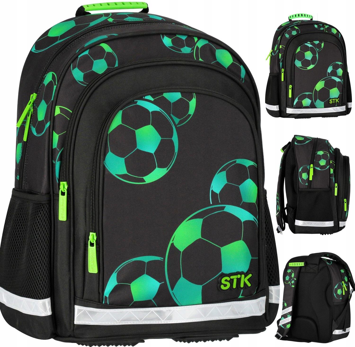 Starpak Plecak Szkolny Football Green 553117 plecak składa się z 1 dużej komory i 2 obszernych przedniej kieszeni 2 boczne wzmocnione kieszenie siatkowe na butelkę z napojem wytrzymałe zamki błyskawiczne, plecak wykonany z mocnego materiału poliestrowego 600D specjalnie powlekanego wodoodporną …