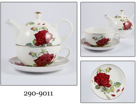290-9011 Dzbanek z filiżanką TEA FOR ONE - ROSES Od FotoABC - autoryzowanego dystrybutora Uroczy zestaw "TEA FOR ONE" z kolekcji English Collection, wykonany z porcelany New Bone China. Dzbanek oraz filiżanka po złożeniu tworzą elegancką całość. Cechy zestaw "TEA FOR ONE”, z motywem kolorowych róż wykonany z porcelany New Bone China (charakteryzującej się elegancką i naturalną kremowo - białą barwą, z delikatnym połyskiem, a także wyjątkową wytrzymałością przy zachowaniu lekkości i delikatności) składa się z czajniczka z pokrywką oraz filiżanki rzeczywisty odcień kolorów może się różnić ze względu na indywidualne ustawienia monitora ze względu na złocenia zalecamy mycie ręczne Zawartość zestawu filiżanka czajniczek z pokrywką spodeczek Zestaw zapakowany w ozdobne pudełko - doskonale nadaje się na oryginalny prezent. Filiżanka pojemność: ok. 250 ml średnica: 11 cm wysokość: 5,5 cm Czajniczek pojemność: ok. 450 ml wysokość: 8,5 cm Spodeczek średnica: 15 cm