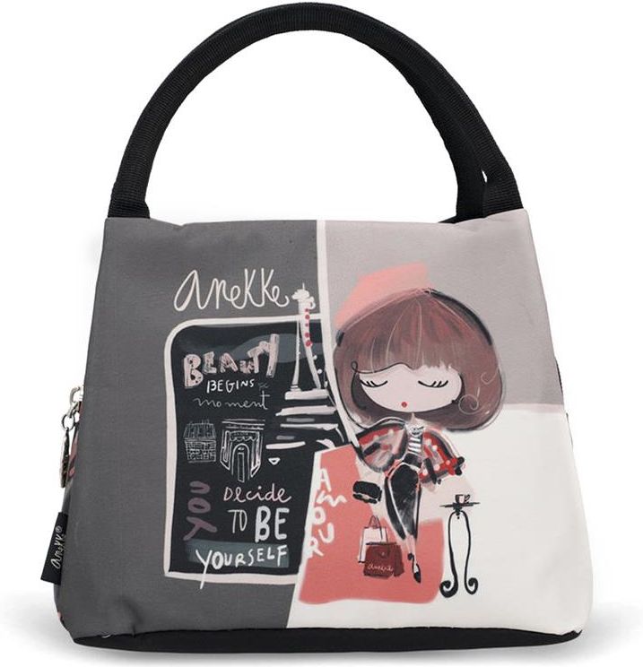 A243 torebka Śniadaniowa LUNCH BOX Anekke Real Madmoiselle Wymiary przybliżone (szer x wys x głęb.na dnie): 23 x 18 x 15 cm Materiał: poliester, folia aluminiowa Torba termiczna Anekke wyposażona jest w dwa uchwyty i zamykana na zamek błyskawiczny. Wnętrze lunchboxa Anekke wyłożone jest wysokiej jakości folią termiczną, aby lepiej utrzymać temperaturę potraw. Właściwości Wysoka jakość – wytrzymały materiał z łatwym do czyszczenia wnętrzem Izolacja termiczna – utrzymuje temperaturę posiłków, zarówno ciepłych, jak i zimnych Pojemna komora główna – bez problemu zmieści lunch box, owoce, przekąski i napoje Wygodne uchwyty – komfortowe przenoszenie w każdej sytuacji Szerokie otwarcie na zamek – łatwy dostęp do zawartości Pudełko śniadaniowe lub torba termiczna do transportu żywności to świetna alternatywa dla powszechnie używanych pojemników jednorazowych. Anekke to marka dbająca o czystość planety, wykorzystująca materiały powtórnie przetworzone. Ta torba termiczna jako alternatywa opakowań jednorazowych jest tego przykładem. ✔ torba termiczna do pracy ✔ lunch box damski ✔ torba na jedzenie do szkoły ✔ torba piknikowa ✔ torba podróżna na przekąski Torba termiczna lunch box damska – modny nadruk, izolowane wnętrze, idealna do pracy i szkoły Najnowsza kolekcja Anekke Mademoiselle na sezon jesień–zima 2025/2026 czerpie swoją inspirację wprost z francuskiego stylu życia i estetyki Paryża – ze szczególnym uwzględnieniem paryskich atelier, artystycznej atmosfery Montmartre’u, klasycznej architektury i ducha francuskich projektantów. To kolekcja, która łączy nostalgiczną elegancję retro z nowoczesną funkcjonalnością. Estetyka XIX/XX‑wiecznego Paryża — elegancja, finezja i klasyka w dzisiejszym wydaniu. Bordo, brązy, beże, grafit — jak opadłe liście w jesiennym Paryżu, Fasady butików, kawiarnie, ręcznie pisane kartki, wieża Eiffla – wszystko odwołuje się do kultury miasta świateł. Metaliczne zawieszki (np. wieża Eiffla), hafty oraz 3D aplikacje podkreślają artystyczny charakter produktów. Bohaterka Anekke jako Mademoiselle – dojrzała, ale subtelna artystka, żyjąca w rytmie paryskiego życia