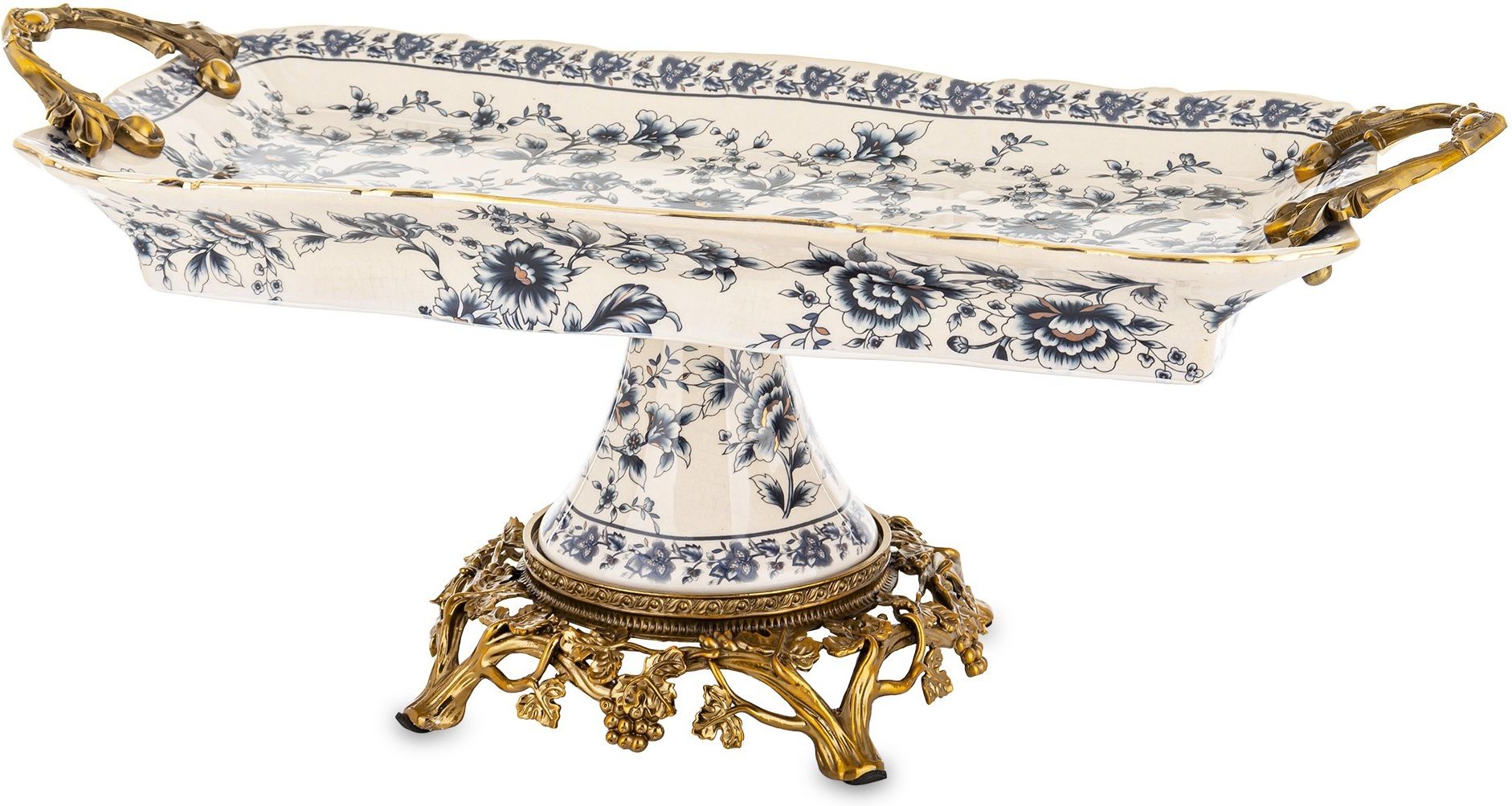 Taca Dekoracyjna Na Nóżce Ceramika / Kolekcja Empire Rozmiar: 18x43x18 Pakowanie: 4/1 Waga: 2.13 kg Materiał: ceramika Kolor: biały, niebieski