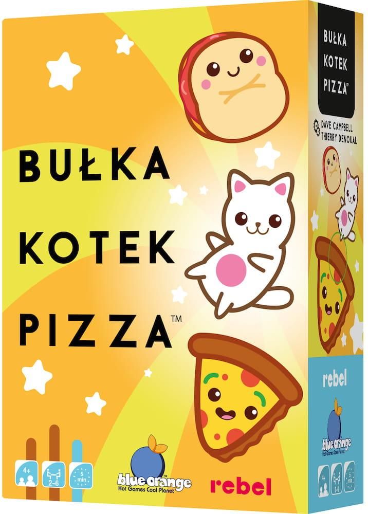 BUŁKA, KOTEK, PIZZA Zgadywanka dla najmłodszych Bułka, Kotek, Pizza – zapamiętaj te trzy urocze słowa! W tej niezwykle prostej grze dla najmłodszych staramy się jak najszybciej pozbyć się wszystkich swoich kart. Odwróć wierzchnią z nich mówiąc jedno z tytułowych słów. Jeśli obrazek na karcie …
