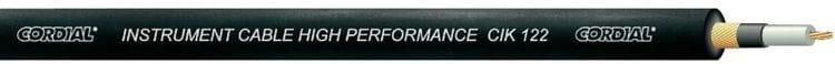 Przewód instrumentalny Cordial CIK 122 wykonany z miedzi beztlenowej (OFC). CIK 122 - 0,22mm2, (7x0,20mm) Średnica zewnętrzna 6,15mm +-0,15mm Waga: 50 g/m (50kg/km) Temperatura pracy: Systemy przewoźne (– 5stC) – (+70stC) Instalacje (–20stC) – (+70stC) Pojemność (Cond./Cond.) 130 pF/m Rezystancja: 85 Ohm/km