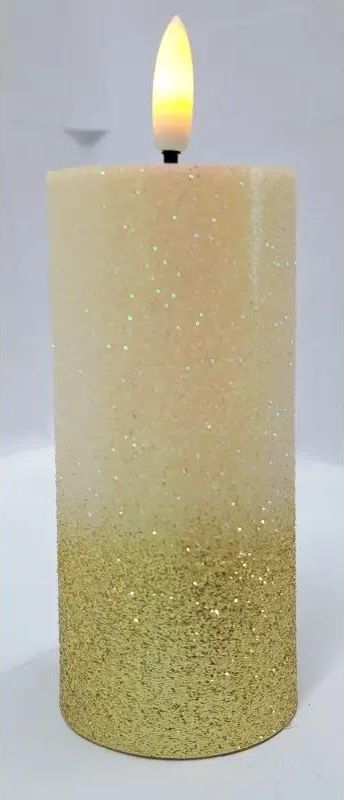 SUNLIGHT QUALITY Świeca z brokatem LED Biała ciepła 5x11cm do lampionu z efektem płomienia 2xAA Jawor