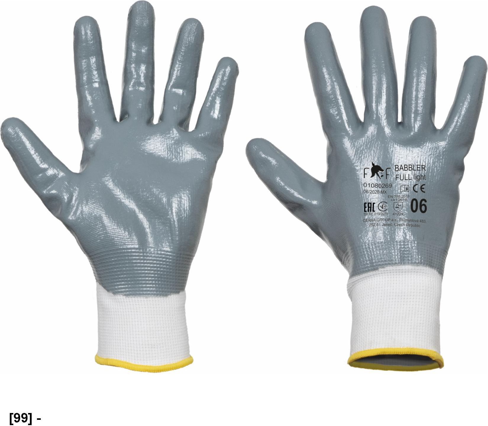 Minimalna ilość zamówienia to opakowanie zawierające 12 par (sprzedaż tylko w pełnch opakowaniach).Cena podana jest za parę rękawic. FF BABBLER FULL LIGHT Materiał powleczenia: nitryl, Materiał rękawic: poliester, Materiał mankietu: poliester. Spełniają normy: EN 420, EN 388(4122X). Posiadają cechy: Marka: FF