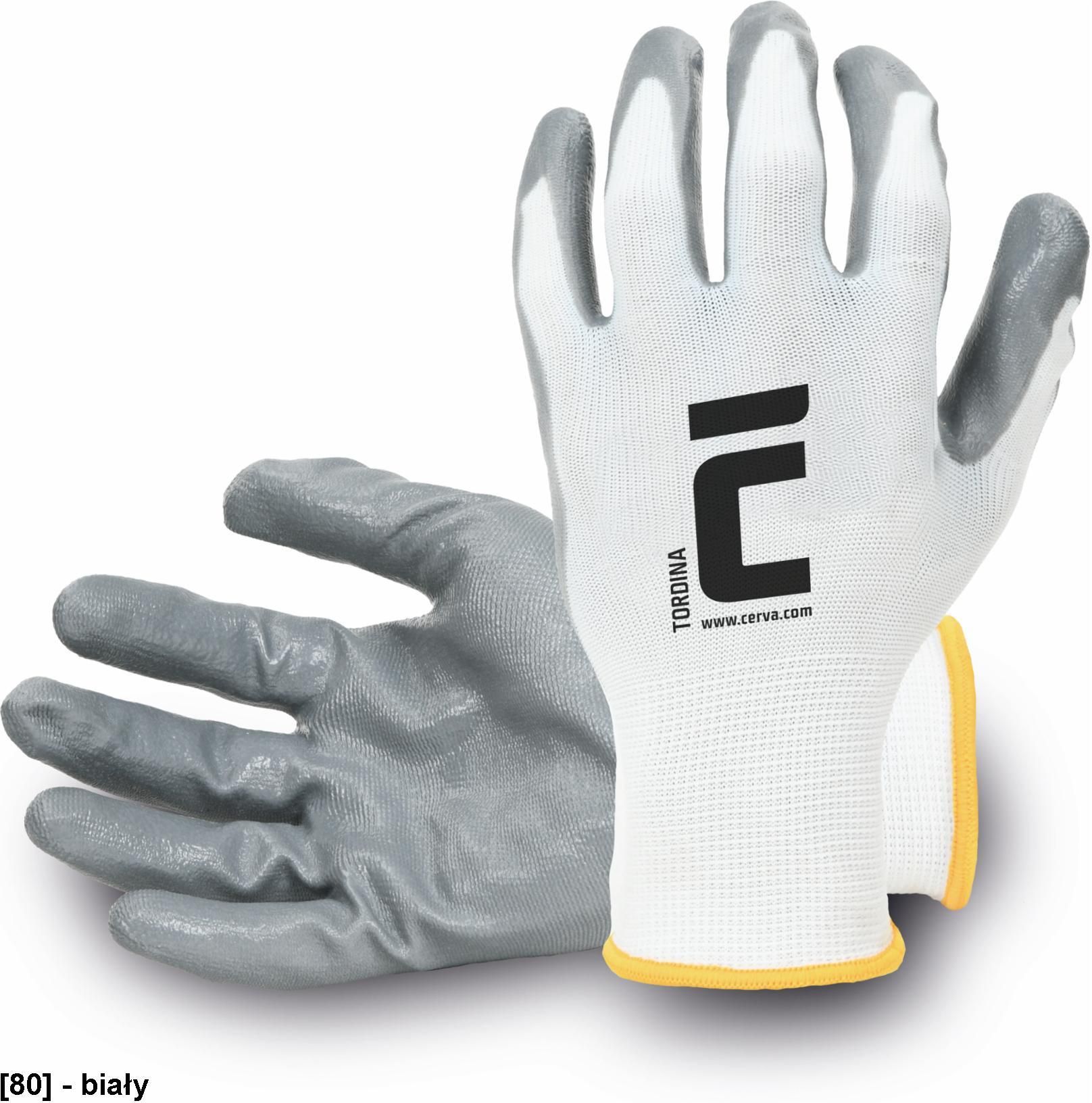 Minimalna ilość zamówienia to opakowanie zawierające 12 par (sprzedaż tylko w pełnch opakowaniach).Cena podana jest za parę rękawic. TORDINA Materiał powleczenia: nitryl, Materiał rękawic: poliester, Materiał mankietu: poliester. Spełniają normy: EN 420, EN 388(4131X). Posiadają cechy: Marka: CERVA