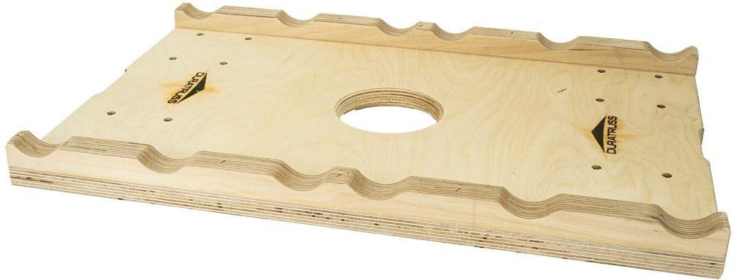 DT Truss Dolly 33/34 MP Płyta Multiplex 21 mm z dwiema sekcjami o szerokości 30 mm do umieszczenia dwóch sekcji kratownicy obok siebie o wymiarze zewnętrznym 290 mm. Środkowy otwór na uchwyt i dwa wycięcia na pasek po bokach. 16 otworów do montażu rolek. Dostawa bez kółek i pasów! Specyfikacja Długość: 600 mm Szerokość: 400 mm Wysokość: 25 mm Grubość płyty multipleksowej: 20 mm