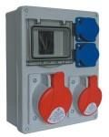 Rozdzielnica posiada okienko inspekcyjne na 4 moduły ; 2 gniazda 230V ; 2 gniazda 3-fazowe 5x32A