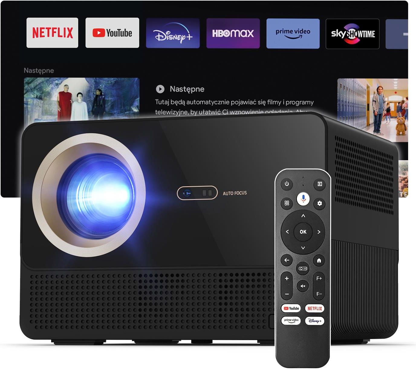 RZUTNIK PROJEKTOR LED AUTOFOCUS ANDROID 1000ANSI LM 4K FULL HD WIFI KOREKCJA Jeśli nie lubisz niespodzianek to zamiast projektorów z mocno okrojonym Androidem i aplikacjami bez wsparcia wybierz stabilny i oficjalny system Android TV. Odkryj kino Domowe wraz z projektorem LED Medialove M1000 ATV Android TV 11 + AF Oficjalny system operacyjnymAndroidTV 11 (bezpośrednio z urządzenia możesz odtwarzać filmy na Youtube, Netflix, HBO, Disney+, Prime Video, Skyshowtime i wiele innych bez potrzeby podłączania się do urządzenia przez telefon, laptopa, itp.) Pilot z Asystentem Google oraz skrótami do Youtube, Netflix, Disney+ oraz Prime Video. Wifi ze wsparciem Airplay / Chromecast / Airscreen (do udostępniana obrazu z telefonu) Bluetooth 5.1 ⭐ AUTO FOCUS + Auto Keystone (Autokorekcja obrazu) 1000 ANSI lm / 30000 lumenów ZAMKNIĘTA KONSTRUKCJA OPTYKI PROJEKTORA (koniec z kurzem na ekranie) Bardzo cichy! 40dB - realna zmierzona wartość. Czym wyróżnia się projektor MediaLove M1000 ATV? To innowacyjny projektor LED stworzony z myślą o domowej rozrywce. Wyposażony w certyfikowany system Android TV 11, zapewnia dostęp do tysięcy aplikacji streamingowych i multimedialnych. Funkcja automatycznego ustawiania ostrości i korekcji obrazu sprawia, że ekran zawsze jest wyraźny i dopasowany do ściany lub ekranu projekcyjnego. Projektor LED Medialove M1000 ATV Android TV + AF Urządzenie, które zaoferuje Ci niesamowite doznania wizualne i dźwiękowe. Posiada rozdzielczość natywną Full HD (1920px x 1080px), działa na systemie Android TV, obsługuje WiFi oraz Bluetooth 5.1. Z jasnością 1000 ANSI lumenów i kontrastem 2000:1 gwarantuje wysoką jakość obrazu.✅ Szybki dostęp do aplikacji do przesyłania strumieniowego z telefonów z systemem Android i iOs: dzięki funkcji Chromecast, czy innych dostępnych aplikacji łatwo przerzucisz obraz z telefonu na projektor. W zestawie znajdziesz pilot.✅ Lekka konstrukcja, kompaktowe rozmiary i wbudowane gniazda USB, HDMI oraz AUX sprawiają, że projektor jest łatwy do przenoszenia i używania. Projektor z zamkniętą optyką!!! Większość projektorów posiada otwartą optyką, przez co mogą pojawiać się plamy kurzu widoczne na obrazie. WSZYSTKO W JEDNYM MIEJSCU DZIĘKI SYSTEMOWI OPERACYJNEMU ANDROID TV Wbudowane aplikacje to YouTube, Netflix, Prime Video, czy Disney+. Zainstalujesz na urządzeniu ze sklepu Google Play np. HBO Max, SkyShowtime, Premiery Canal+, Polsat Box Go, Kodi, TVP VOD, TVN24 Go, Viaplay, TV Smart Go, CDA Smart TV, TVP Sports, Eleven Sports PL, Ekstraklasa TV, UPC TV Go, Spotify i wiele, wiele innych. Znajdź czas na twój relaks i rozrywkę! DLACZEGO WYBRAĆ WŁAŚNIE TEN PROJEKTOR? Obraz do 200 cali w rozdzielczości Full HD (1080p)✅ Zamknięta konstrukcja, dzięki takiej budowie nie musimy martwić się o kurz czy inne zanieczyszczenia na ekranie✅ Oficjalny system Android TV 11- aktualizacje większości aplikacji na bieżąco✅ Łączność Wi-Fi 2,4Ghz / 5Ghz ze wsparciem Chromecast✅ Aż 60 000 godzin żywotności lampy✅ HDR✅ Kontrast 2000:1✅ Jasność 1000 ANSI lumenów / 30000 light source lm✅ Automatyczne ustawienie ostrości i korekcja trapezoidu✅ Łączność za pomocą Wi-Fi z urządzeniami w systemach Android, iOS laptopami z Windows!✅ Możliwość zawieszenia pod sufitem lub na statywie✅ Funkcja ZOOM✅ Prostota użytkowania✅ Wbudowane głośniki 2 x 10W. Dźwięk zapewniający wsparcie Dolby Audio✅ Sterowanie za pomocą pilota, wyszukiwanie głosowe✅ Wbudowane aplikacje: YouTube, Netflix, Prime Video, sklep Google Play (tysiące aplikacji do pobrania)✅ Wejścia: USB, HDMI, AUX, IR✅ W podstawie gwint na statyw oraz otwory do standardowego uchwytu sufitowego (pod gumowymi nóżkami) Jakie możliwości oferuje? Projektor generuje jasny obraz w jakości Full HD z obsługą materiałów 4K. Dzięki Wi-Fi i Bluetooth możesz w prosty sposób przesyłać filmy, zdjęcia i muzykę z telefonu lub komputera. Wbudowane głośniki sprawiają, że sprzęt działa jak przenośne kino, gotowe do użytku od razu po włączeniu. AUTOMATYCZNE USTAWIENIE OSTROŚCI PRZY ROZRUCHU - AUTO FOCUS Rzutnik został wyposażony w aparat o wysokiej czułości, który skutecznie automatycznie się wyostrza, poprawiając jakoś obrazu.✅ Jakość obrazu może być również ustawiona ręcznie za pomocą pilota. ŚWIETNY OBRAZ DZIĘKI AUTO FOCUS I KEYSTONE CORRECTION Czy znasz to uczucie, gdy próbujesz dostosować obraz projektora i marnujesz na to mnóstwo czasu? Z Projektor Medialove, ten problem zniknie raz na zawsze. Dzięki funkcji Auto Focus i Keystone Correction Twój obraz zostanie automatycznie wyjustowany do ostrości i odpowiednich proporcji. Wszystko to w kilka sekund. Zapomnij o manualnych regulacjach, zapomnij o zniekształceniu obrazu. Po prostu włącz projektor i ciesz się perfekcyjnym obrazem. FUNKCJA ZOOM 50% -100% Dzięki tej innowacyjnej funkcji nie ma potrzeby częstego dostosowywania odległości projektora do rozmiaru ekranu.✅ Jeżeli obraz jest za duży i nie ma możliwości przestawienia projektora wystarczy łączyć opcje zoom i zmniejszyć obraz. Można zmniejszyć obrazu z 100%, aż do 50%. JASNOŚĆ 1000 ANSI LUMENS I RODZIELCZOŚĆ 1080p DLA NIEZRÓWNANEJ JAKOŚCI OBRAZU Jeżeli jakość obrazu jest dla Ciebie priorytetem, Projektor Medialove zostanie Twoim nowym najlepszym przyjacielem. Oferuje on jasność na poziomie 1000 ANSI Lumens i rozdzielczość 1080p, co gwarantuje wyjątkowo jasny i ostry obraz, niezależnie od warunków oświetleniowych. Oglądaj filmy, prowadź prezentacje, czy graj w gry wideo w jakości, jakiej nigdy wcześniej nie doświadczyłeś. M1000 ATV przekształci każdą przestrzeń w prywatne kino z niezrównaną jakością obrazu. KINOWE WRAŻENIA W DOMOWYM ZACISZU Z projekcją od55 do 200 cali, Medialove M1000 ATV dostosowuje się do Twoich potrzeb. Bez względu na to, czy oglądasz film na dużym ekranie czy prezentujesz materiał
