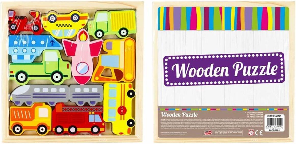 Układanka drewniana pojazdy: 12-elementowy zestaw od Mega Creative Wspomaganie rozwoju dzieci: Ta edukacyjna układanka od Mega Creative to doskonały sposób na wspomaganie kreatywności i zdolności manualnych u dzieci. Dzięki łączeniu kolorowych drewnianych pojazdów, maluchy mogą uczyć się poprzez zabawę oraz rozwijać swoją koncentrację i wyobraźnię. Produkt jest idealny na długie, jesienne wieczory spędzone w domu. 12-elementowy zestaw: Zabawa z układanką polega na dopasowywaniu drewnianych pojazdów do odpowiednich kształtów. Dzięki urozmaiconym figurkom, dzieci mogą poznać różne rodzaje pojazdów i bawić się nimi w różnorodne sposoby. Przyjazny dla dzieci: Produkt posiada ładną kolorystykę, która przyciąga uwagę dzieci. Układanka nie wymaga zasilania bateriami, co sprawia, że jest bezpieczna i łatwa w użyciu nawet dla najmłodszych dzieci. Informacje o produkcie: Wymiary układanki to 17x17x2 cm, a jej waga wynosi 0,20 kg. Wymiary opakowania są takie same jak produktu, a całość pakowana jest w folijkę. Zestaw jest przeznaczony dla dzieci w wieku 3 lat i więcej. Zapewnij swojemu dziecku kreatywne i edukacyjne zajęcie, wybierając układankę drewnianą z pojazdami od Mega Creative! EAN: 5904335852592