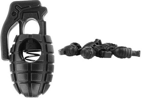 Zestaw 10 stoperów w formie granatu ręcznego do założenia na sznurek lub gumę . Można go wykorzystać np. do troczenia ekwipunku na zewnątrz plecaka. Stoper wykonano z polimeru, czyli wytrzymałego tworzywa sztucznego cechującego się dużą sztywnością i odpornością na obciążenia oraz uderzenia, nawet w niskich temperaturach. Dane techniczne Kolor: czarny Materiał: polimer Wymiary: 30 x 22 x 18 mm Producent: Mil-Tec, Niemcy