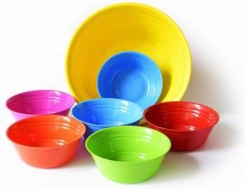 uniwersalny zestaw misek, wykonany z wysokiej jakości tworzywa sztucznego komplet składa się z dużej 4 litrowej miski z pokrywką oraz sześciu mniejszych misek o pojemności 600 ml bezpieczne i nietoksyczne, wolne od BPA, posiadają niezbędne certyfikaty przeznaczone do mycia w zmywarce i podgrzewania w kuchence mikrofalowej produkt nadaje się do recyklingu kolor misek: czerwony (duża miska) + mix kolorów (małe miseczki)