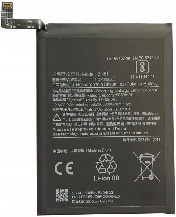 Bateria do Xiaomi BN61 BATERIA DO URZĄDZEŃ XIAOMI BN61- Oferowana przez nas bateria do telefonu Xiaomi to w pełni nowy i pełnowartościowy komponent zamienny od sprawdzonego producenta. Baterie te cechują się dobrą jakością, która idzie w parze z atrakcyjną ceną. Bateria BN61 do urządzeń firmy XIOAMI Dziś oferujemy na sprzedaż część do telefonu Xiaomi Poco X3 Kolor: czarny / black Kod części: BN61 EAN: 5905943502794 Produkt dedykowany do modelu: Xiaomi Poco X3 i innych kompatybilnych. W zestawie znajduje się: bateria, pudełko na czas transportu. Cały zestaw oryginalnie zespolony. Parametry produktu: Stan: NOWY Model: XIAOMI BN61 Pojemność: 6000 mAh Napięcie: 4.45V Zdjęcia są poglądowe - przedstawiają jedną z wielu sztuk, które mamy na stanie.