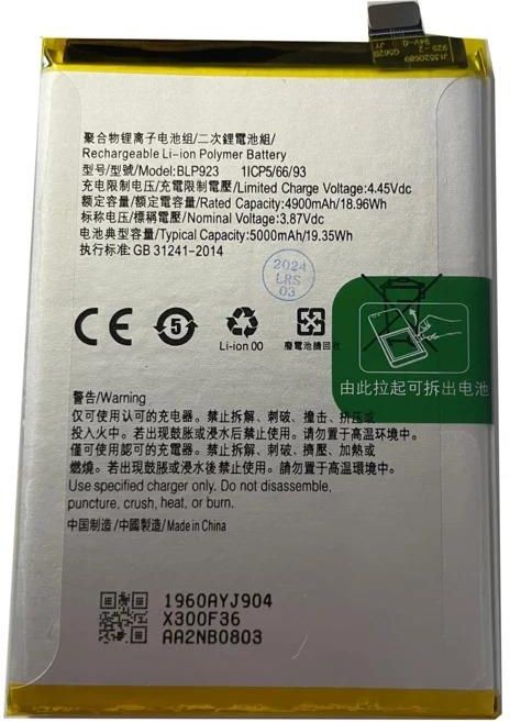 BATERIA DO URZĄDZEŃ OPPO - Oferowana przez nas bateria do telefonu OPPO to w pełni nowy i pełnowartościowy komponent zamienny od sprawdzonego producenta. Baterie te cechują się dobrą jakością, która idzie w parze z atrakcyjną ceną. Dziś oferujemy na sprzedaż część do telefonu OPPO A97 5G, A58 5G, A77 5G Kod części: BLP923 Produkt dedykowany do modelu: OPPO A97 5G, A58 5G, A77 5G i innych kompatybilnych. W zestawie znajduje się: bateria, pudełko na czas transportu. Cały zestaw oryginalnie zespolony. Parametry produktu: Stan: NOWY Model: OPPO A97 5G, A58 5G, A77 5G Pojemność: 5000 mAh Napięcie: 3,87 V Zdjęcia są poglądowe - przedstawiają jedną z wielu sztuk, które mamy na stanie.