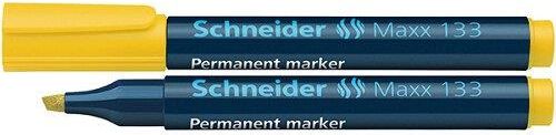 Marker permanentny Schneider MAXX 133 końcówka ścięta obudowa plastikowa światło- i wodoodporny tusz w intensywnych kolorach do pisania po każdej gładkiej powierzchni - drewnie, plastiku, szkle, metalu itd. szybkoschnący, bezzapachowy, nietoksyczny - bez dodatku ksylenu i toluenu nie zasycha pozostawiony bez skuwki nawet przez 2-3 dni skuwka z praktycznym klipem elementy obudowy w kolorze tuszu kod kreskowy umieszczony na każdym produkcie grubość linii pisania: 1-4 mm jednostka sprzedaży: 1 sztuka w opakowaniu zbiorczym: 10 sztuk kolor żółty