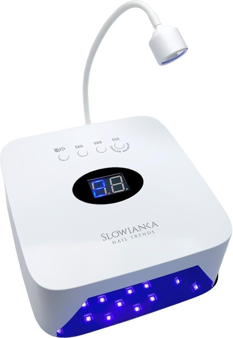 Opis Produktu Slowianka Lampa LED 2W1 54 WAT to nowatorskie rozwiązanie, które na zawsze odmieni pracę w Twoim salonie kosmetycznym. Ta bezprzewodowa lampa LED łączy w sobie tradycyjną funkcję utwardzania produktów polimerowych z unikalnym wężykiem LED do przymrażania produktów podczas pracy z Duo …