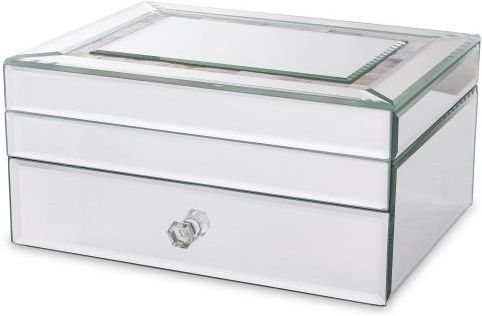 Szkatułka kasetka na biżuterię szklana glamour srebrna 10,5x22x18 169303Rozmiar: 10,5x22x18cmKolor: srebrny, kremowyMateriał: mdf, szkło