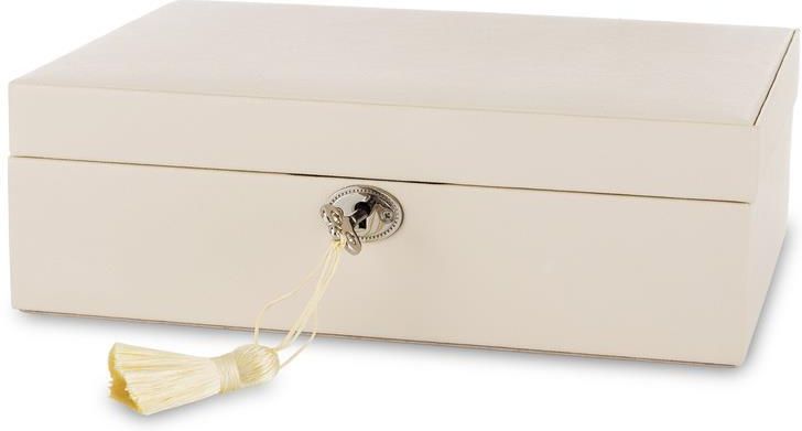 SZKATUŁKA KUFEREK NA BIŻUTERIĘ ELEGANT EXCLUSIVE COLLECTION Modne włoskie wzorownictwo oraz wysoka jakość to elementy wyróżniające linię elegant exclusive. Szkatułki doskonale nadają się do przechowywania biżuterii, mają wiele praktycznych schowków i przegródek, wykończonych wyjątkowo delikatnym materiałem. WYMIARY SZKATUŁKI:(wysokość x szerokość x głębokość):8,5 x 27 x 19 cm Materiał: mdf, tkanina skóropodobna PRZEDMIOT: NOWY OPIS:Wykonana z imitacji skóry w odcieniu beż. Znajdziesz w niej lusterko, wałki na pierścionki, przegródki.Wyścielana w środku miłym w dotyku materiałem - aksamitem. IDEALNA NA PREZENT !!