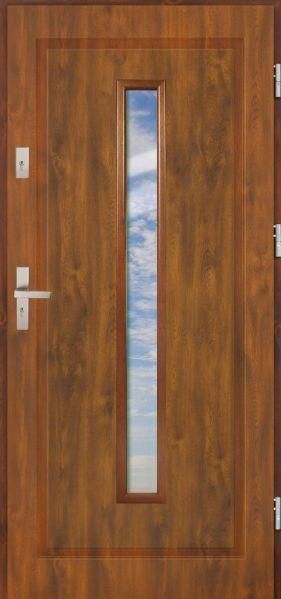 Drzwi wejściowe z kolekcji MARIO charakteryzuje się prostokątnym tłoczeniem na powierzchni skrzydła, wykończonym ramką PCV.