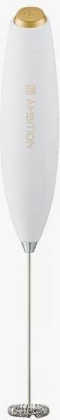 Spieniacz do mleka | elektryczny | AMBITION Funkcjonalny spieniacz do mleka na baterie marki AMBITION Cechy produktu Materiał: tworzywo sztuczne, stal nierdzewna, Biały kolor ze złotymi akcentami, Działa na 2 baterie AA Doskonały do przygotowania z łatwością kremowej, mlecznej pianki, Mały, …