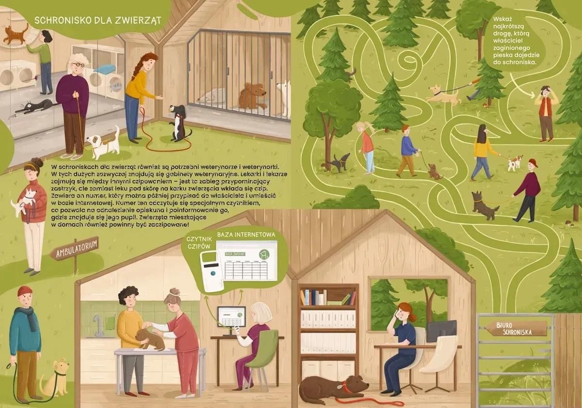 Lekarze i lekarki weterynarii kochają zwierzęta: badają je, leczą, operują, szczepią, ćwiczą z nimi, pomagają im w przyjściu na świat… Pracują w małych gabinetach, wielkich klinikach, schroniskach dla zwierząt, ośrodkach rehabilitacji, laboratoriach i wielu innych miejscach. A kiedy trzeba, …