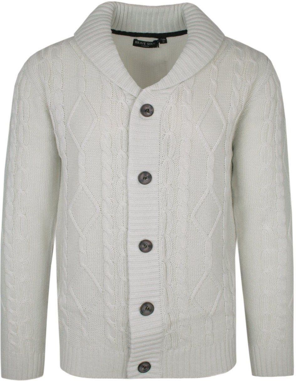 Modny dziergany sweter męski typu kardigan marki Brave Soul. Jest to konieczne uzupełnienie męskiej szafy ze względu na uniwersalny charakter. Dobrany z elegancką koszulą i krawatem jest przykładem niezobowiązującej elegancji (tzw. smart casual). Połączony z t-shirtem będzie z kolei wygodnym strojem weekendowym.