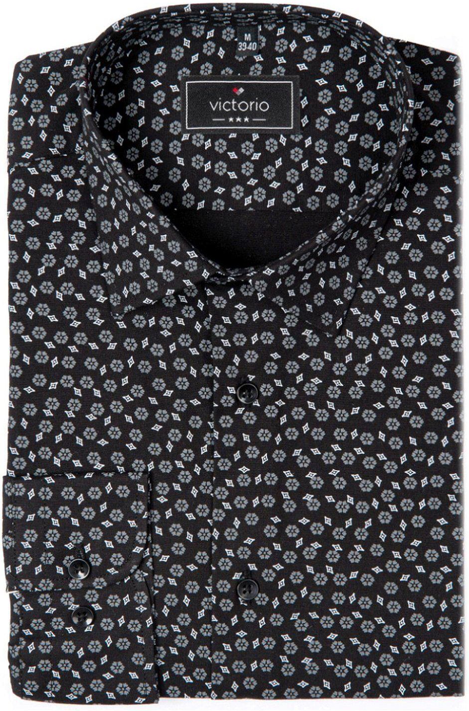 Elegancka Koszula o Prostym Kroju - Victorio - Czarna w Drobny Wzór KSDWVCTO736RG Jedlicze