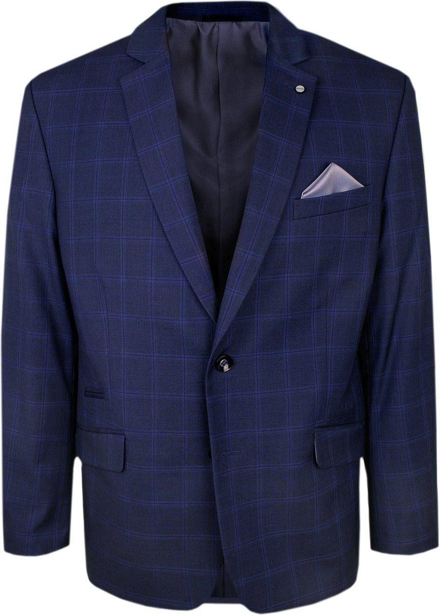 Elegancka Marynarka Męska - Casino - Delikatnie Taliowana - Granatowa w Kratę MARCSNO2648 Jedlicze