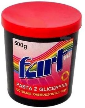 FART BIS to zaliczana do grupy kosmetyków wysokiej klasy pasta BHP do mycia silnie zabrudzonych rąk. Doskonale nadaje się dla osób, których dłonie codziennie podczas pracy narażone są na stykanie się z pyłami, rdzą, smarami, olejami i innego rodzaju zabrudzeniami. Zawiera wysokiej jakości substancje myjące, naturalne ścierniwa i związki, które skutecznie usuwają brud wszelakiego pochodzenia. Dzięki odpowiedniemu składowi pasta jest bardzo skuteczna i wydajna. Specjalnie dobrane składniki nie tylko myją, ale i chronią dłonie przed wysuszaniem. PASTA FART BIS zawiera substancje pochodzenia roślinnego. Obecność pochodnych gliceryny (Glycerylmonooleate) stanowiących naturalny składnik lipidów skóry, podnosi skuteczność natłuszczania i znacznie ogranicza wysuszanie naskórka, delikatnie nawilża. Zmniejsza to konieczność stosowania kremów do rąk. Pasta FART BIS posiada atest PZH, a także pozytywną ocenę Kliniki Dermatologicznej. SPOSÓB PAKOWANIA 16 szt. w kartonie