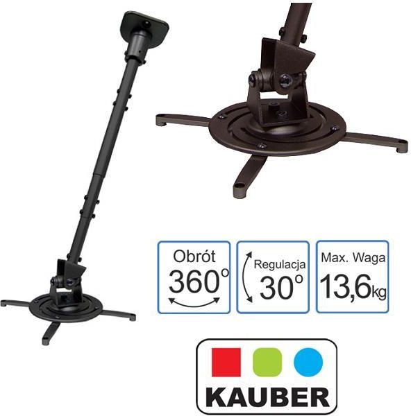 Uchwyt PRO1 Plus marki Kauber to wysokiej jakości uniwersalny uchwyt przeznaczony do montażu projektorów multimedialnych na suficie w domowych instalacjach kina, biurach i salach konferencyjnych. Posiada możliwość regulacji kąta nachylenia w dwóch płaszczyznach ok. 30°, możliwość obrotu o 360° oraz dostosowania długości ramienia od 22,5 do 113 cm.
