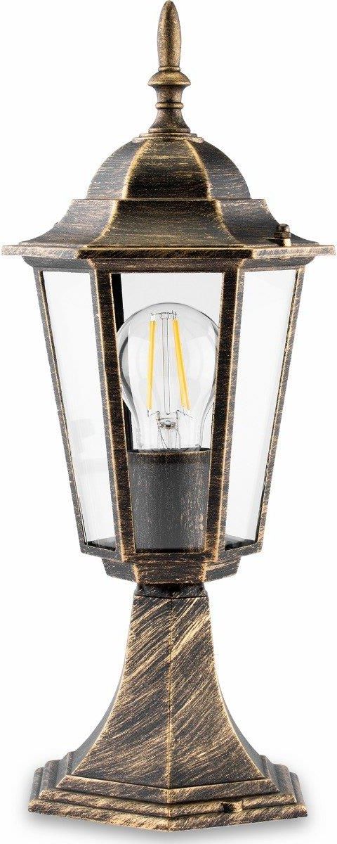 Lampa Ogrodowa Zewnętrzna E27 SŁUPEK LATARNIA 40cm Patyna BELLIS LUMILED Lampa Ogrodowa, Słupek Zewnętrzny serii BELLIS marki LUMILED o wysokości 42 cm w kształcie latarni w kolorze czarnym. Lampa wykonana z wysokiej jakości aluminium oraz szkła. Zastosowanie stopu aluminium do produkcji lampy sprawia, że jest ona lekka, wytrzymała oraz odporna na korozję. Lampa z wymiennym źródłem światła została wyposażona w popularny trzonek E27 - maksymalna moc nie może przekraczać 12W LED. Lampa BELLIS została wykonana z dużą dbałością o szczegóły z połączenia wysokiej jakości aluminium i szkła. Dzięki temu nie tylko wygląda bardzo stylowo, ale także zachowuje pełną estetykę przez wiele lat. Lampa została wyposażona w popularny trzonek (gwint) E27, dzięki czemu mamy możliwość dobrania żarówek LED i tradycyjnych odpowiedniej mocy i barwy światła wedle naszych potrzeb, jednakże maksymalna moc źródła światła nie może przekraczać 12W LED. Lumiled® to marka oświetleniowa oficjalnie zarejestrowana w europejskim systemie EUIPO. Lumiled® na polskim rynku od ponad 10lat dba o zadowolenie klienta. Główne zalety produktu: Elegancki i stylowy wygląd Wymienne źródło światła Popularny gwint na żarówki E27 o max. mocy 12W. Łatwość montażu Odporność na zachlapania - IP44 Produkt wykonany z wysokiej jakości metalu z dbałością o każdy detal Luksusowa i efektowna konstrukcja Szerokie zastosowanie lampy Lampy Lumiled zaprojektowane zostały pod kątem wilgotnych miejsc i zostały poddane testom, które potwierdziły ich odporność na wodę. Lampa cechuje się klasą wodoszczelności IP44 oznacza to, że jest odporna na zachlapania i wnikaniem pyłów, co sprawia, że jest idealną lampą do zastosowań zewnętrznych. Kilka przykładów zastosowań: Oświetlenie chodnika - zamontowanie lampy w wzdłuż chodnika lub ścieżki ogrodowej, jest bardzo ciekawym rozwiązaniem, które zapewni ich dobre oświetlenie, tworząc unikalny nastrój. Oświetlenie ogrodu/ tarasu - dobrze oświetlony ogród sprawi, że Twoje rośliny będą równie pięknie wyglądać po zmroku co w promieniach słońca, a wieczorne spotkania z rodziną i przyjaciółmi będą odbywać się w przytulnej i kameralnej atmosferze. Zobacz także inne słupki ogrodowe lub przeglądnij szeroką ofertę wszystkich lamp ogrodowych w naszym asortymencie. UWAGA! Brak źródła światła w komplecie.
