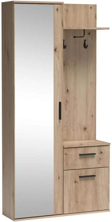 Garderoba to bardzo praktyczny i funkcjonalny mebel, który pomoże nam zorganizować i uporządkować przestrzeń w przedpokoju. Garderoba Lux została wykonana z płyty wiórowej laminowanej. Dzięki swojej kolorystyce wpasuje się w większość aranżacji i nada im oryginalnego charakteru. Zestaw zawiera panel z szafką oraz szafę z lustrem i drążkiem na ubrania. Dzięki, którym zyskamy łatwo dostępną przestrzeń do przechowywania rzeczy, ubrań i butów.