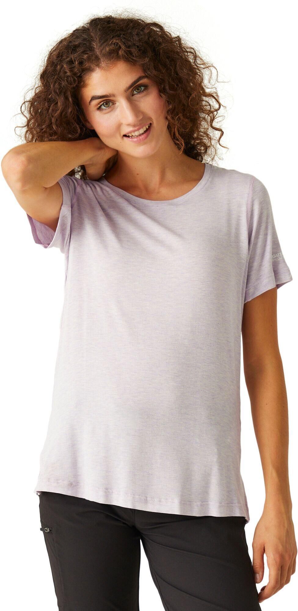 Regatta - Damska koszulka Ballyton Zaawansowana technologicznie damska koszulka sportowa Ballyton z dodatkiem stretchu idealnie nadaje się na treningi. Elastyczny materiał ułatwia ruchy. Szybko schnie i wykorzystuje technologię chłodzenia HeiQ Smart Temp, aby zagwarantować świeżość podczas najcięższych treningów na siłowni. Zalety produktu Szybkoschnący: Szybko schnie po zamoczeniu 150 g/m² Recycled 95% wiskoza/5% elastan, szybkoschnący, elastyczny dżersej Wykonane z materiałów pochodzących z recyklingu Technologia chłodzenia HeiQ Smart Temp Doskonałe parametry odprowadzania wilgoci Szybkoschnący Technologia HeiQ Smart Temp: HeiQ Smart Temp to rewolucyjna technologia tekstylna, która pozwala tkaninom dynamicznie reagować na rosnącą temperaturę skóry