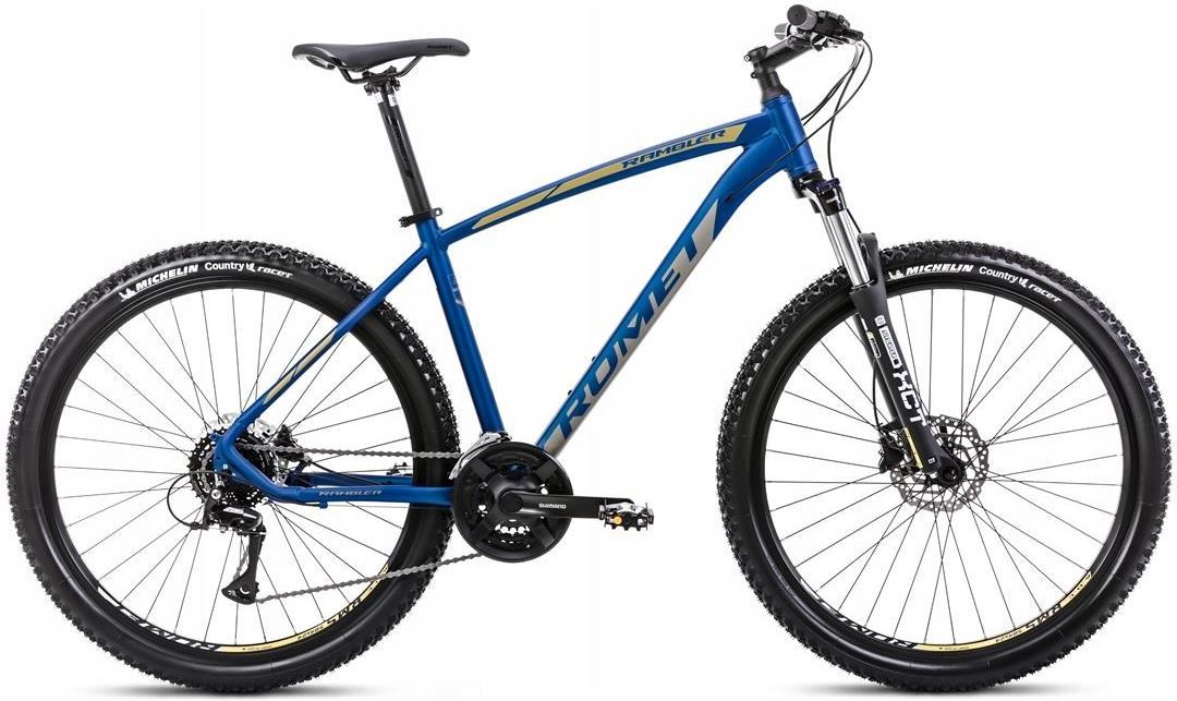 Rower górski ROMET RAMBLER R7.3 2024 - M Romet Rambler R7.3 – solidny sprzęt na wyprawy górskimi i leśnymi szlakami. To męski rower, z kołami o średnicy 27,5 cala, należący do popularnej klasy MTB. Opracowaliśmy go z myślą o zaawansowanych użytkownikach, którzy mają już niejedną wyprawę w trudnym terenie i którzy potrzebują niezawodnego sprzętu o wyższych parametrach. Dlatego Rambler R7.3 bazuje głównie na podzespołach sprawdzonych i powszechnie cenionych firm. Solidna rama to własny projekt naszych inżynierów. Wykonana została ze stopu aluminium 6061, który dobrze sprawdza się w warunkach ciężkiej i wymagającej eksploatacji. Rambler R7.3 to męski rower górski – stworzony by zmierzyć się z naprawdę trudnym terenem, zapewniając sprawne pokonywanie przeszkód z dużymi prędkościami. Manetki tył: Shimano ST-EF505 8 biegów Opony: Continental Ruban 27.5x2.10 Kaseta/wolnobieg: Shimano CS-HG31 11-34T, 8 biegów Siodło: Romet Mechanizm korbowy: Shimano FCTY-301 42/34/24T 170mm Przerzutka tył: Shimano Acera RD-M3020 SGS Przerzutka przód: Shimano Tourney FD-TY700 Rozmiar koła: 27,5 Hamulec przód: Shimano ST-EF505/BR-M200 Widelec: Suntour XCT HLO 100mm Obręcze: Aluminiowe dwukomorowe Kolor: niebieski Kierownica: RMT Components 720mm / 31,8mm Mostek kierownicy: Romet aluminiowy 90mm/31,8mm Piasta przód: Shimano HB-TX500 9mm / 100mm Hamulec tył: Shimano ST-EF505/BR-M200 Napęd: 3x8 Tarcza hamulcowa przód: Shimano SM-RT10 centerlock 160mm Manetki przód: Shimano ST-EF505 3 biegów Materiał ramy: Aluminiowa Piasta tył: Shimano FH-TX505 9mm / 135mm Tarcza hamulcowa tył: Shimano SM-RT10 centerlock 160mm Sztyca: Romet aluminiowa 31,6mm/350mm Pedały: FP-971 Płeć: unisex Wersja: C Kolorystyka: niebiesko-żółty Nazwa podstawowa: Rower górski ROMET RAMBLER R7.3 2024
