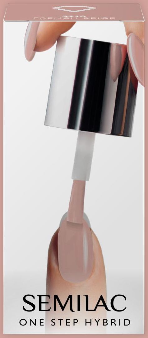 Lakier Hybrydowy One Step 3 ml - S210 French Beige S210 Semilac One Step Hybrid Marker French Beige 3ml Delikatny beżowy odcień w półtransparentnej odsłonie. Idealnie nadaje się jako baza do french manicure. Pokochają go wszystkie amatorki naturalnego looku. Rekomendujemy nakładanie 3 cienkich warstw produktu. Nigdy nie próbowałyście manicure hybrydowego, a wciąż marzycie o pięknych, zadbanych paznokciach? Specjalnie dla Was stworzyliśmy produkt, z którym Wasz pierwszy manicure hybrydowy będzie dziecinnie prosty. Poznajcie innowacyjny marker Semilac One Step Hybrid! Zamknięty w nim lakier nie wymaga użycia dodatkowej bazy czy topu. Wystarczy Wam jeden produkt, dzięki któremu manicure wykonacie szybciej i oszczędniej. Marker jest poręczny i bardzo wygodnie trzyma się go w dłoni – dzięki temu to najprostsza metoda na piękne paznokcie! Dodatkowo posiada specjalny pędzelek, który ułatwia malowanie przy skórkach, bez zalewania ich lakierem. Ilość lakieru na pędzelku dozuje się samodzielnie poprzez przekręcanie markera. Proste, prawda? Pamiętajcie, aby po skończonej stylizacji zaaplikować na paznokcie oliwkę i dokładnie wypolerować płytkę paznokcia. Zapewni to jeszcze większy połysk Waszym paznokciom. Najważniejsze zalety produktu: – nie wymaga użycia bazy i topu – lakier łatwo i szybko się usuwa – piękny kolor i połysk – paznokcie w trakcie noszenia są wzmocnione, co pozwala zapuścić paznokcie – zaawansowany technologicznie aplikator, który ułatwia nakładanie lakieru – malowanie pod same skórki – idealny dla początkujących Przed użyciem markera zapoznajcie się z instrukcją, dołączoną do opakowania. Prawidłowa aplikacja produktu jest kluczem do pięknej stylizacji. Pojemność: 3 ml – wystarczy na 5 manicure! KROK 1 – Nadaj kształt paznokciom i zmatuj płytkę, odtłuść paznokcie Semilac Nail Cleaner. KROK 2 – Skieruj marker pędzelkiem w dół, przekręć dolną część aż pojawi się lakier. KROK 3 – Zaaplikuj cienką warstwę lakieru. KROK 4 – Utwardź w lampie. Powtórz kroki 2 i 3 nakładając grubsze warstwy aż do uzyskania satysfakcjonującego krycia. KROK 5 – Przetrzyj paznokcie wacikiem nasączonym Semilac Nail Cleaner. KROK 6 – Wypoleruj paznokcie oliwką lub polerką o gradacji 4000. KROK 7 – Przemyj pędzelek Semilac Nail Cleaner CZAS UTWARDZANIA Lampa UV LED 9 W – 2 x 60 sek Lampa UV LED 12 W – 2 x 60 sek. Lampa UV LED 24 W – 2 x 60 sek. Lampa UV LED 36 W – 2 x 30 sek. lampa UV LED 48/24 W – 60 sek./120sek. Lampa UV 36 W – 120 se