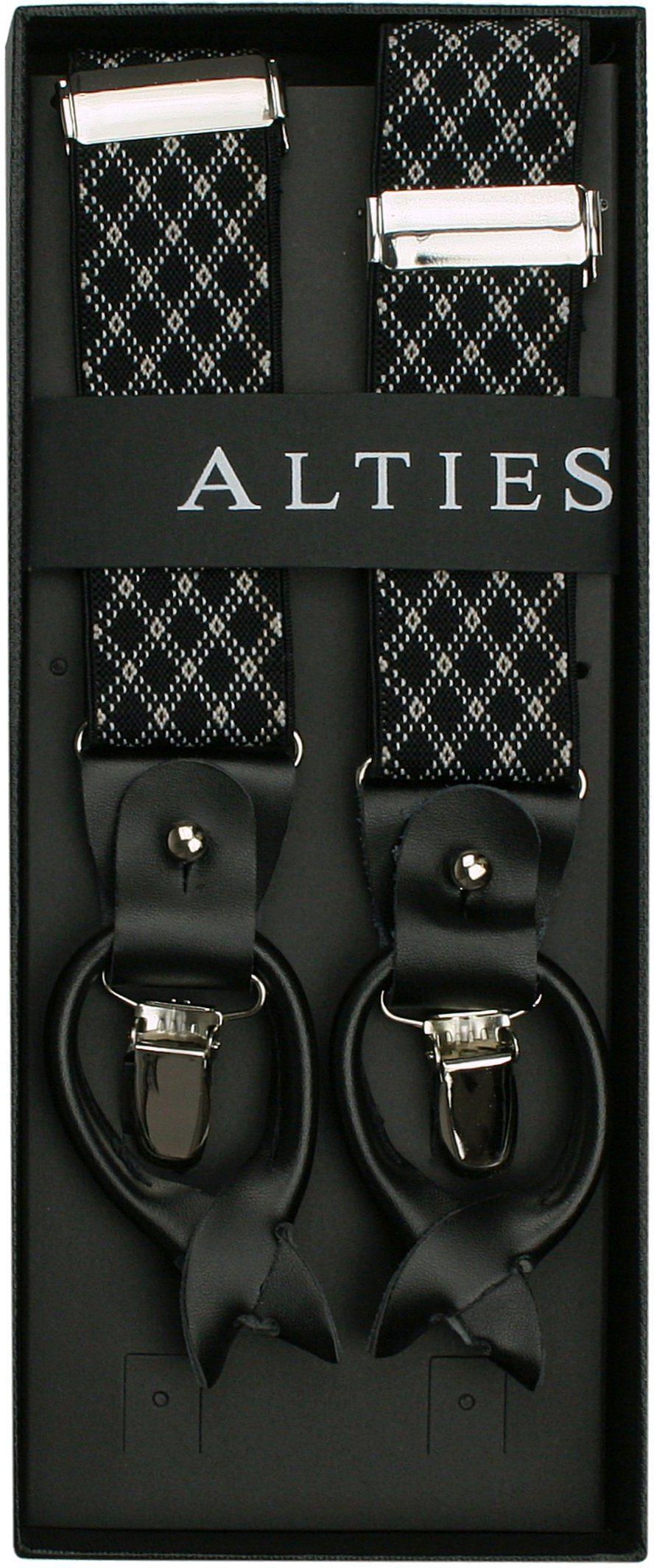 Szelki Klasyczne, Zapięcie na Guziki lub Żabki, Męskie -ALTIES - Czarne, Geometryczny Wzór SZALTS0080 Jedlicze