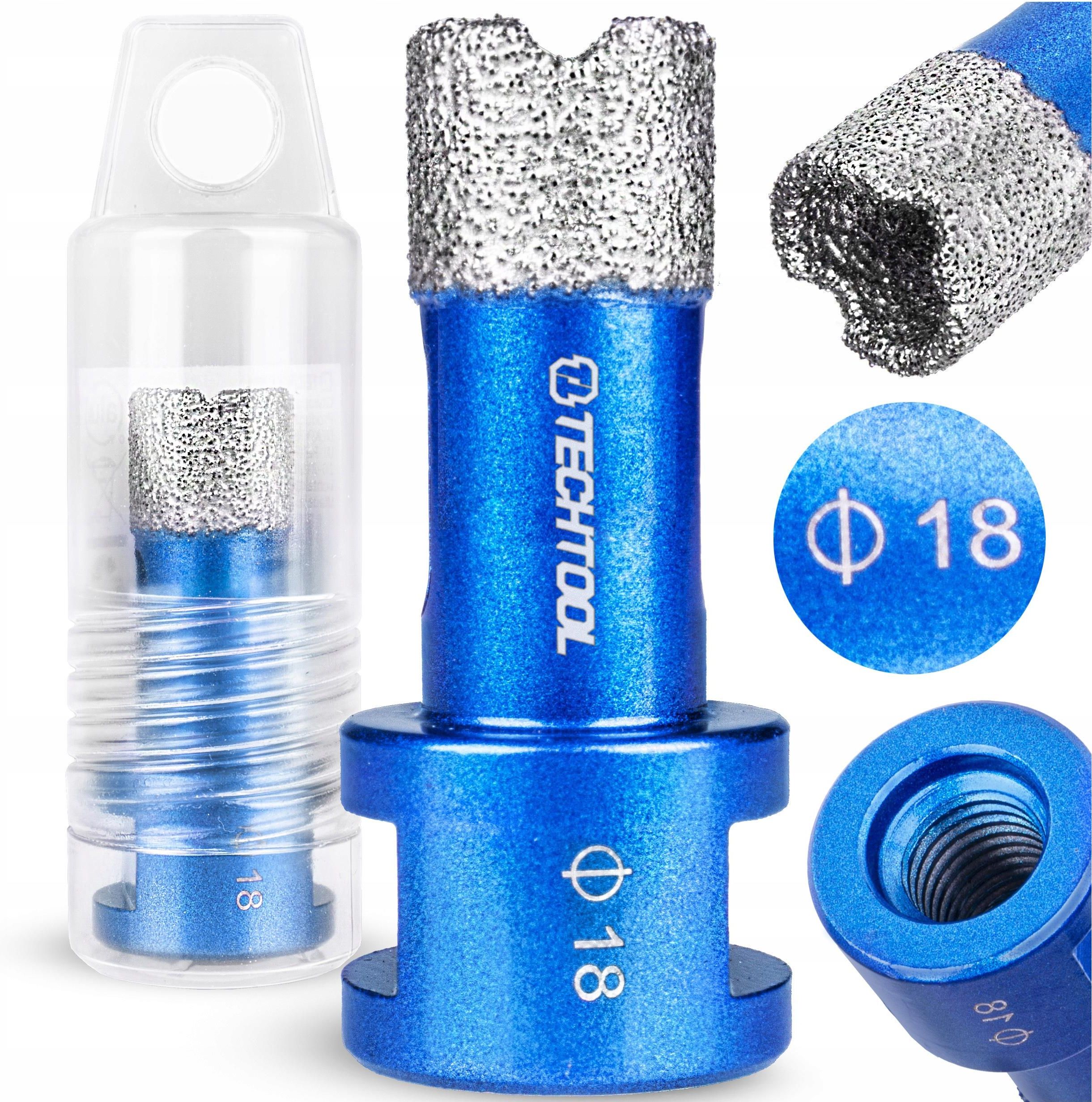 OTWORNICA DO BETONU GRESU PUSZEK PŁYTEK DIAMENTOWA 18 MM M14 TECHTOOL Dane techniczne Marka: TECHTOOL Model: TTHS18 Materiał: stal Rozmiar otwornicy: 18 mm Wysokość nasypu diamentowego: 15 mm Możliwość wiercenia: na mokro i na sucho Kolor: niebieski Gwint otwornic: M14 - do szlifierek Osadzenie diamentów: technologia próżniowego lutowania Prędkość robocza: 10 000-14 000 obr/min Wysokość całkowita: 60 mm Waga otwornicy: 0.082 kg Opakowanie: osłona z tworzywa sztucznego Koronka diamentowa W OTWORNICY TECHTOOL osadzona w technologii próżniowego lutowania Lutowanie próżniowe to NAJNOWOCZEŚNIEJSZA TECHNOLOGIA łączenia materiałów. To proces polegający na łączeniu kilku metalowych elementów w WYSOKIEJ TEMPERATURZE, zachodzący w specjalistycznych piecach próżniowych. Efektem staje się OGROMNA WYTRZYMAŁOŚĆ połączenia i brak podatności na korozję. Dzięki temu możesz by pewny, że otwornica poradzi sobie w każdym zadaniu. Otwornica diamentowa do wiercenia w różnych materiałach Doskonale sprawdzi się do wiercenia w: gresie porcelanowym gresie polerowanym gresie szkliwionym płytkach spiekach granicie marmurze glazurze lastriko dachówkach betonie ceramice kamieniu naturalnym kamieniu sztucznym twardych tworzywach sztucznych i wiele więcej! Wskazówki dotyczące przedłużenia żywotności otwornic TECHTOOL Warto rozpocząć wiercenie pod kątem 45°. Należy używać szlifierki kątowej/wiertarki/wkrętarki z regulacją obrotów. Po użyciu otwornic należy ją dokładnie oczyścić i wysuszyć, aby móc je bezpiecznie przechowywać. Przed rozpoczęciem wiercenia należy oczyścić oraz sprawdzić boczne otwory wentylacyjne (jeśli występują). Nie należy przekraczać prędkości 11 000 obr/min dla przedłużenia żywotności wiertła. Otwornica może być stosowana z RÓŻNYMI RODZAJAMI CHŁODZIWA, takimi jak woda. Dzięki temu może być zachowana odpowiednia temperatura pracy narzędzia. Chłodzenie może być szczególnie ważne gdy wiercisz długo, bez przerwy.