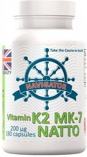 Navigator K2 MK-7 natto 200mcg ODPORNOŚĆ VEGAN 180KAPS Zalety: ✅ Utrzymuje w zdrowiu tętnice, ✅ Pomaga w prawidłowym wchłanianiu i dystrybucji w organizmie wapnia i fosforu, zwiększa ich przyswajanie z pożywienia, ✅ Reguluje prawidłowy poziom wapnia we krwi, ✅ Zmniejsza ryzyko choroby wieńcowej, ✅ Utrzymuje w zdrowiu i w prawidłowej gęstości kości, ✅ Przeciwdziała osteoporozie, ✅ Pomaga w utrzymaniu zdrowych zębów. Opis Witamina K2 MK-7 jest niezwykle skuteczna w profilaktyce osteoporozy, chorób układu krążenia i choroby Alzheimera.Utrata elastyczności naczyń krwionośnych na skutek odkładania się w nich soli wapniai fosforu jest jedną z przyczyn rozwoju chorób układu krążenia. Rozwiązaniem tegoproblemu jest witamina K2 MK-7, która zapobiega zwapnieniu naczyń, szczególnie u ludzi z wysokim ryzykiem występowania niedoboru witaminy K2 lub zwapnień. Witamina K2 MK-7 zapobiega uwapnieniu naczyń krwionośnych w następujący sposób:w surowicy krwi występuje białko o nazwie MGP, które wiąże sole wapniowo-fosforanowe,a tym samym uniemożliwia ich osadzanie się w naczyniach. Jego funkcjonowanie jestzależne od witaminy K2 MK-7. Przy niedoborze witaminy K2 MK-7 białko MGP jestnieaktywne i nie hamuje procesu zwapnienia. Badania naukowe wskazują, iż długoterminowe spożywanie witaminy K2 MK-7(menachinon-7) jest związane ze znaczącym wzrostem odporności na zaburzenia w obrębie funkcjonowania tętnic oraz kości, udowodniono korzystny wpływ na zmniejszenie prawdopodobieństwa powstawania złośliwych zmian w obrębie m.in.piersi, prostaty, nerek. Suplementacja witaminy K2 MK-7 zwiększa odporność na infekcje. Składniki: witamina K2 MK-7 jako menachinon pozyskana w procesie fermentacji bakteriami Bacillus subtilis NATTO, substancje wypełniające: koncentrat ryżowy, ekstrakt ryżowy, bezglutenowa mąka ryżowa, otoczka kapsułki: hydroksypropylometyloceluloza. Składniki odżywcze w porcji dziennej (1 kapsułka): witamina K2 MK-7 200 μg menachinon-7 267% *RWS. *Referencyjna Dzienna Wartość Spożycia dla osób dorosłych. Kapsułka nie zawiera: cukru, jodu, kazeiny, laktozy, alkoholu, glutenu, soli, skrobi, pszenicy, kukurydzy, nabiału, nie zawiera sztucznych konserwantów i sztucznych barwników, nie zawiera stearynianu magnezu ani podobnych związków chemicznych, nie zawiera alergenów, produktów GMO kapsułki bezzapachowe WAŻNE INFORMACJE Zalecane spożycie: 1 kapsułka dziennie razem z posiłkiem, nie przekraczać zalecanej dawki. Przechowywanie: Przechowywać w chłodnym i suchym miejscu. Przechowywać w miejscu niedostępnym dla małych dzieci. Środki ostrożności: Nie stosować w przypadku nadwrażliwości na którykolwiek ze składników. Produkt nie może być stosowany jako substytut (zamiennik) zróżnicowanej diety oraz zdrowego trybu życia. Przed zastosowaniem wskazane jest wykonanie badania 25(OH)D we krwi oraz konsultacja wyniku badania z lekarzem lub farmaceutą. Suplement diety jest środkiem spożywczym, którego celem jest uzupełnienie normalnej diety. Suplement diety nie ma właściwości leczniczych