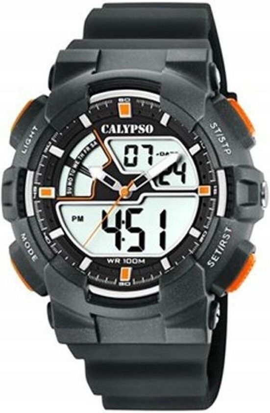 Calypso K57714 Zegarek Calypso K57714 to nie tylko narzędzie do pomiaru czasu, ale także wyraz osobowości i stylu. Stanowi doskonałe połączenie praktyczności, estetyki i funkcjonalności, będąc nieodłącznym elementem codziennego życia. Ten model z pewnością spełni oczekiwania każdego miłośnika stylowych dodatków. Typ zegarka Ten model to zegarek analogowo-cyfrowy, co oznacza, że łączy w sobie tradycyjny wygląd z nowoczesnymi funkcjami. Tego rodzaju opcje są idealne dla osób szukających praktycznego zastosowania i eleganckiego wyglądu. Zegarki analogowo-cyfrowe są często wybierane przez tych, którzy chcą połączyć klasyczny styl z aktualnymi trendami, co czyni je uniwersalnym dodatkiem na wiele okazji. Mechanizm K57714 kryje w sobie mechanizm kwarcowy, znany z niezawodności oraz precyzji. Zegarki kwarcowe są szczególnie cenione za dokładność i niewielką potrzebę konserwacji. Wysoka jakość zastosowanego mechanizmu zapewnia długotrwałe i niezawodne działanie, co istotne jest dla osób, które poszukują zegarka do codziennego użytku. Materiał koperty Koperta zegarka wykonana jest z tworzywa sztucznego, co sprawia, że jest lekka i wygodna w noszeniu. Materiał ten charakteryzuje się wysoką odpornością na uszkodzenia i zarysowania, co czyni go idealnym wyborem dla osób aktywnych. Szary kolor koperty doskonale współgra z innymi elementami zegarka, tworząc spójną całość. Szkiełko Model K57714 wyposażony jest w szkło hesalitowe, które zapewnia wysoką przejrzystość oraz odporność na zarysowania. Użytkownicy mogą cieszyć się doskonałą widocznością tarczy zegarka bez obaw o uszkodzenie szkiełka podczas codziennych aktywności. Szkło hesalitowe jest lekkie, co wpływa na wagę całego zegarka. Wodoszczelność Zegarek charakteryzuje się wodoszczelnością na poziomie 10 metrów, co oznacza, że jest odporny na zachlapania i krótkotrwałe zanurzenia w wodzie. To istotna cecha dla osób prowadzących aktywny tryb życia, które często narażają swoje zegarki na kontakt z wodą. Wodoszczelność umożliwia noszenie zegarka podczas codziennych czynności, takich jak mycie rąk czy w deszczowy dzień. Wymiary zegarka Model ma średnicę koperty wynoszącą 50 mm oraz grubość 16 mm, co sprawia, że jest wyraźny i dobrze widoczny na nadgarstku. Dzięki tym wymiarom, zegarek świetnie pasuje do męskiego stylu, a proporcje zapewniają komfort noszenia. Długość paska z dziurkami wynosi 125 mm, a część ze sprzączką ma długość 95 mm, co zapewnia swobodę regulacji. Pasek Pasek zegarka wykonany jest z tworzywa sztucznego, co zapewnia trwałość oraz elastyczność. Dzięki temu model jest komfortowy w codziennym noszeniu, co ma szczególne znaczenie dla osób, które spędzają wiele godzin z zegarkiem na nadgarstku. Kolor czarny paska w połączeniu z szarymi elementami koperty i tarczy tworzy harmonijną i elegancką całość. Kluczowe cechy zegarka Zegarek K57714 posiada szereg istotnych właściwości, które warto podkreślić: Typ: analogowo-cyfrowy, Mechanizm: kwarcowy, Materiał koperty: tworzywo sztuczne, Kolor koperty: szary, Kolor paska: czarny, Szkło: hesalitowe, Wodoszczelność: 10 m, Średnica koperty: 50 mm, Grubość koperty: 16 mm, Długość paska: 125 mm (część z dziurkami), 95 mm (część ze sprzączką), Styl: sportowy. Funkcje dodatkowe Model K57714 oferuje szereg funkcji, które zwiększają jego funkcjonalność. Do najważniejszych zalet należy możliwość podświetlenia, co ułatwia odczyt czasu w warunkach słabego oświetlenia. Dodatkowe funkcje, takie jak stoper czy datownik, mogą być przydatne w codziennym użytkowaniu. Nowoczesny design wyróżnia się oryginalnym wzorem z logo marki, co dodatkowo podkreśla jego indywidualny charakter.