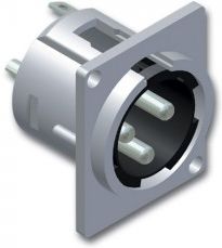 Gniazdo XLR męskie firmy Procab VC3MDL   trzypolowe gniazdo tablicowe  wyposażone w mechanizm blokujący niklowana obudowa niklowane styki