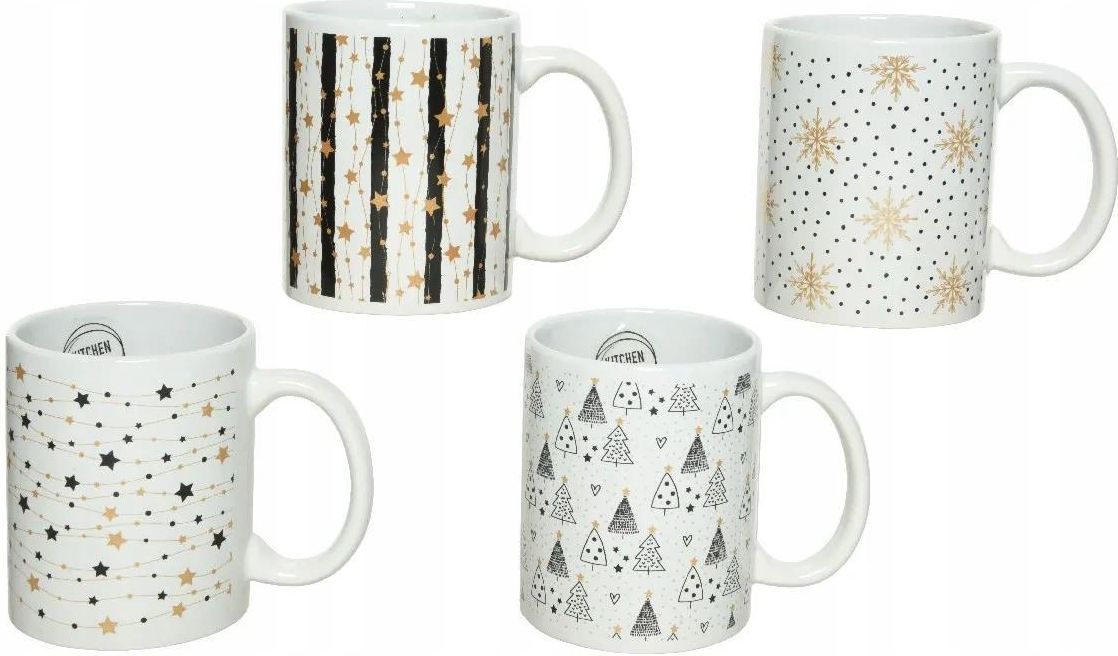 Parametry: ☑️Marka: Decoris ☑️Materiał wykonania: Ceramika ☑️Kolor: Biało-złoty ☑️Wzór: Gwiazdki w paski ☑️Wymiary: 12 x 9,4 x 8 cm ☑️Mycie z zmywarce: Tak ☑️Mikrofala: Tak ☑️Zastosowanie: Kubek świąteczny do kawy, herbaty Cena dotyczy jednej sztuki Produkt występuje w kilku wzorach. Wysyłany losowy dostępny wzór.