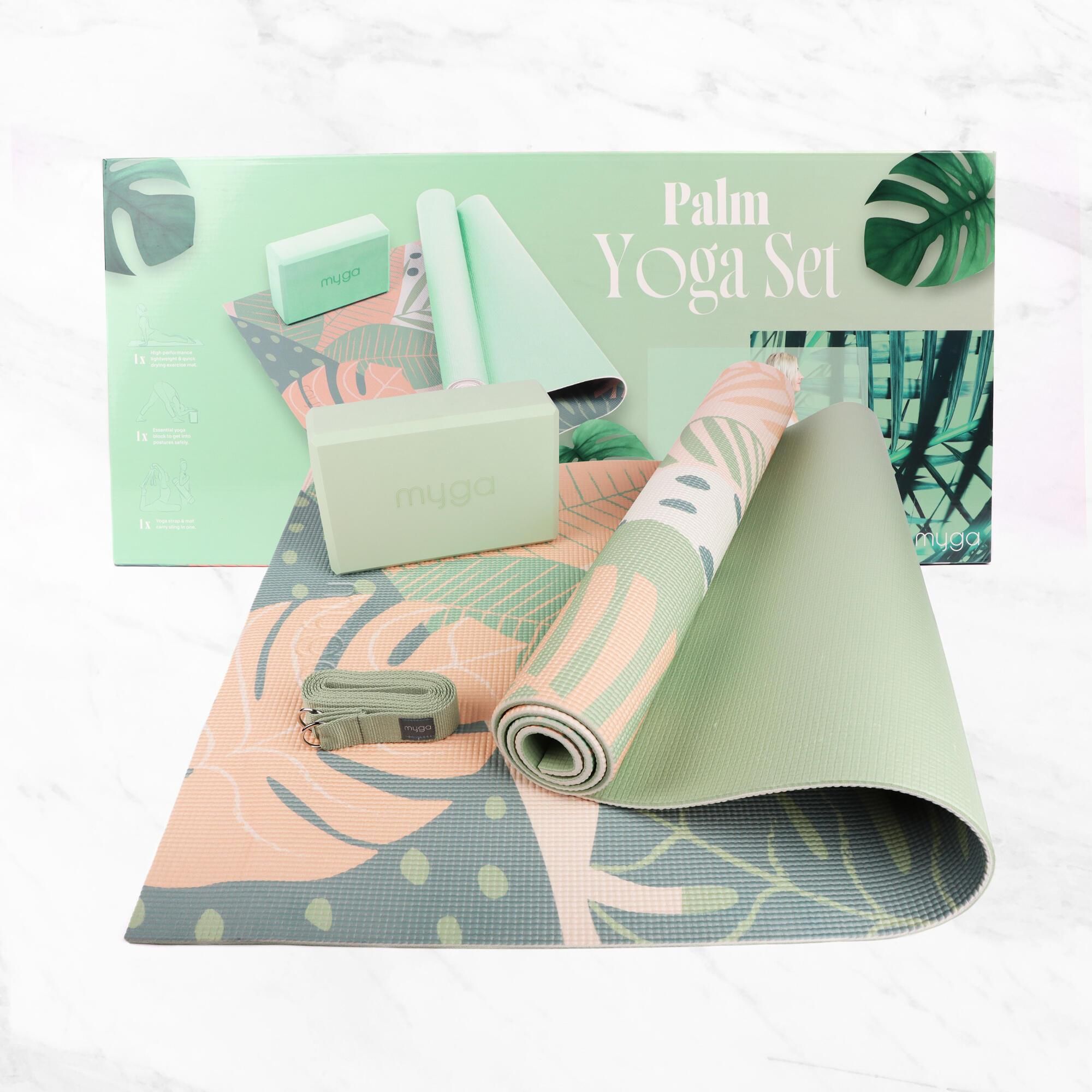 Myga Zestaw Do Jogi Yoga Set: Mata, Klocek, Pasek 173Cm Zielone Jędrzejów