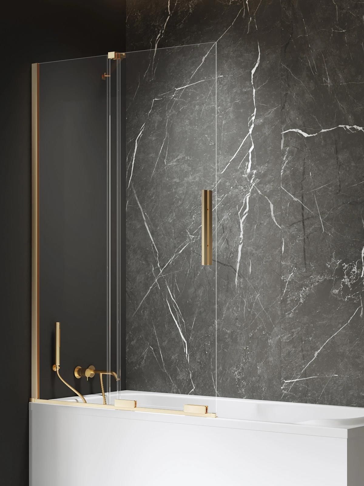 Parawan nawannowy SMART GOLD BRUSHED EXK-7785-WU – Szczotkowanie, szkło 8 mm Estetyka spotyka funkcjonalność Model SMART GOLD BRUSHED (80x150) jako parawan nawannowy oferuje elegancki wygląd i nowoczesne linie, które podkreślają charakter łazienki. Kolor: Złoty. Wykończenie: Szczotkowanie. Grubość szkła: 8 mm. Szkło i zabezpieczenie Dzięki zastosowanej powłoce Active Shield 2.0, szkło zyskuje odporność na zabrudzenia i jest łatwe w pielęgnacji. Funkcjonalność w codzienności Ten wariant o wymiarze 80x150 pasuje do wielu aranżacji łazienkowych. Model Smart Gold Brushed charakteryzuje się eleganckimi złotymi detalami ze szczotkowanym wykończeniem. Parawany kąpielowe mają bezpieczną, hartowaną szybę o grubości 8 mm, pokrytą powłoką ochronną Active Shield 2.0. Produkty z tej kolekcji są wyposażone w dolny system przesuwny oraz punktową prowadnicę na górze. Kolekcja objęta jest 7-letnią gwarancją. Produkt można również zamówić na wymiar. Zamontuj raz – korzystaj przez lata bez kompromisów.