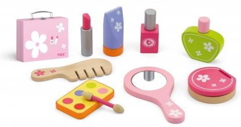 Viga Zestaw Do Makijażu (50531) Kąciki zabaw odgrywają kluczową rolę w życiu każdego dziecka, a zestawy tematyczne, takie jak Viga Zestaw Do Makijażu (50531), są doskonałą okazją do odkrywania nowych możliwości i rozwijania kreatywności. Ta wyjątkowa kosmetyczka z akcesoriami do makijażu jest idealna dla wszystkich małych księżniczek, które chętnie naśladują swoje mamy, ciocie czy babcie, pragnąc wyrazić siebie poprzez stylizację i zabawę w makijaż. Materiał wykonania Jakość wykonania jest niezwykle istotna, zwłaszcza z perspektywy bezpieczeństwa dzieci. Kosmetyczka do makijażu wykonana jest z naturalnego drewna, co zapewnia trwałość i odporność na uszkodzenia. Elementy zestawu są pomalowane farbami, które są bezpieczne dla najmłodszych, co stanowi dodatkowy atut dla rodziców dbających o zdrowie swoich dzieci. Wybierając ten produkt, można mieć pewność, że zabawka została stworzona z myślą o bezpieczeństwie maluchów. Rodzaj zabawy i funkcje Zestaw do makijażu zawiera dziewięć różnorodnych elementów, które umożliwiają małym dziewczynkom zabawę w fryzjerkę i kosmetyczkę. W skład akcesoriów wchodzą: okrągłe lusterko z rączką, umożliwiające wygodne malowanie, paleta do makijażu z cieniami w sześciu kolorach oraz aplikator do ich nakładania, puderniczka z lusterkiem, która dodaje realizmu zabawie, szminka, lakier do paznokci oraz butelka perfum, które wprowadzają dziewczynki w świat piękna, grzebień i podkład, które dopełniają całości zestawu. Każdy z elementów został zaprojektowany tak, aby inspirować dzieci do twórczej zabawy i odtwarzania znanych im sytuacji. Wspólne zabawy z rówieśnikami przyczyniają się do rozwijania umiejętności społecznych oraz wyrażania emocji. Rozmiar Zestaw makijażowy ma optymalne wymiary: 21 cm głębokości, 18 cm szerokości oraz 16 cm wysokości. Taki rozmiar sprawia, że zestaw jest łatwy do przechowywania oraz transportowania. Idealnie nadaje się do zabawy w domu, ale także w podróży, dzięki solidnej rączce do przenoszenia. Dzięki swoim wymiarom, kosmetyczka zmieści się w plecaku lub torbie, co pozwala na zabranie jej wszędzie tam, gdzie dzieci będą chciały się bawić. Wiek odpowiedni dla dziecka Zestaw makijażowy został zaprojektowany z myślą o dziewczynkach od 3. roku życia. To idealny moment, aby wprowadzić maluchy w świat zabawy, która nie tylko dostarcza radości, ale także uczy ważnych umiejętności. Dzięki dostosowaniu do wieku, rodzice mogą być pewni, że produkt jest odpowiedni i bezpieczny dla ich pociechy. Zawartość opakowania Kosmetyczka do makijażu to świetna propozycja, która dostarcza wiele radości i kreatywnej zabawy. W skład zestawu wchodzi dziewięć starannie wykonanych elementów, które zapewnią wiele godzin radości. W opakowaniu znajdziemy: okrągłe lusterko, paletę do makijażu z cieniami, puderniczkę z lusterkiem, szminkę, lakier do paznokci, butelkę perfum, grzebień, podkład. Wszystkie te elementy zostały zapakowane w praktyczną kosmetyczkę z zapinką, która ułatwia przechowywanie i transport. Dzięki temu zestaw Viga Zestaw Do Makijażu (50531) staje się nie tylko zabawką, ale również pomocnikiem w organizacji zabawy.