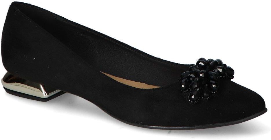 Baleriny For-But 135 Czarne zamsz ozdoba Jedwabne