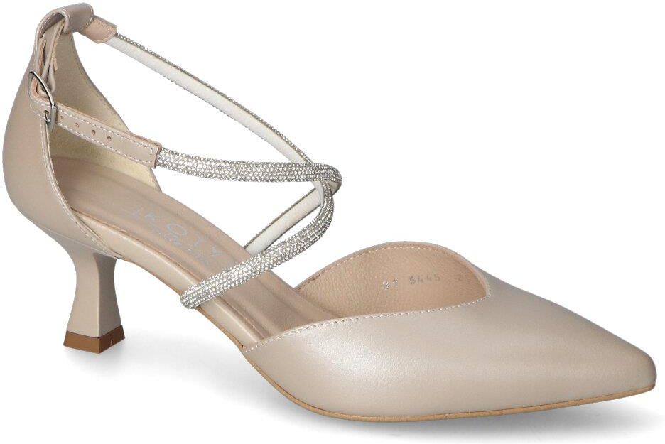 Eleganckie czółenka renomowanej marki Kotyl: - wykonane z najlepszej jakości skóry naturalnej licowej - wkładka wewnętrzna wykonana została ze skóry naturalnej - wnętrze pokryte zostało skórą naturalną aby zapewnić komfort podczas użytkowania - obcas o wys. 5,5 cm zapewnia odpowiednią stabilizację - perłowy kolor, ozdobne paski i modny fason tworzą zachwycające połączenie!