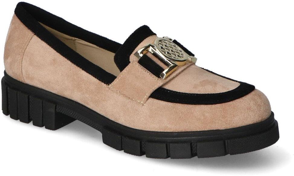 Mokasyny For-But 089/P Beż/Czarny zamsz Jedwabne