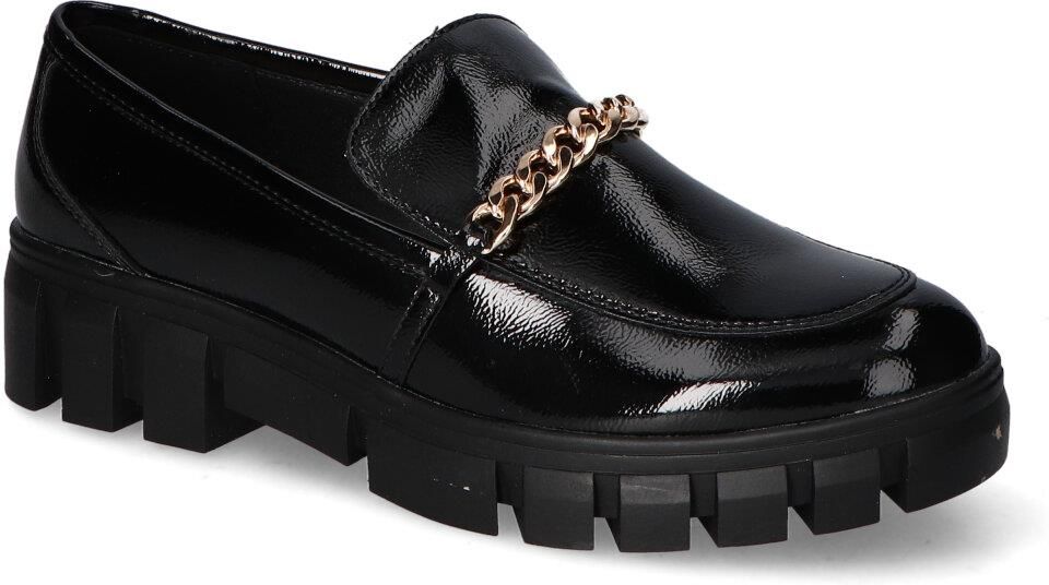 Mokasyny damskie renomowanego producenta Sergio Leone: - cholewka wykonana ze skóry ekologicznej lakierowanej - wnętrze wykonane ze skóry ekologiczną aby zapewnić komfort podczas użytkowania - miękka wkładka wewnętrzna wykonana ze skóry naturalnej - obcas o wys. 3,5 cm zapewnia stabilizację - czarny klasyczny kolor i modny fason tworzą efekt, który zachwyci każdego!